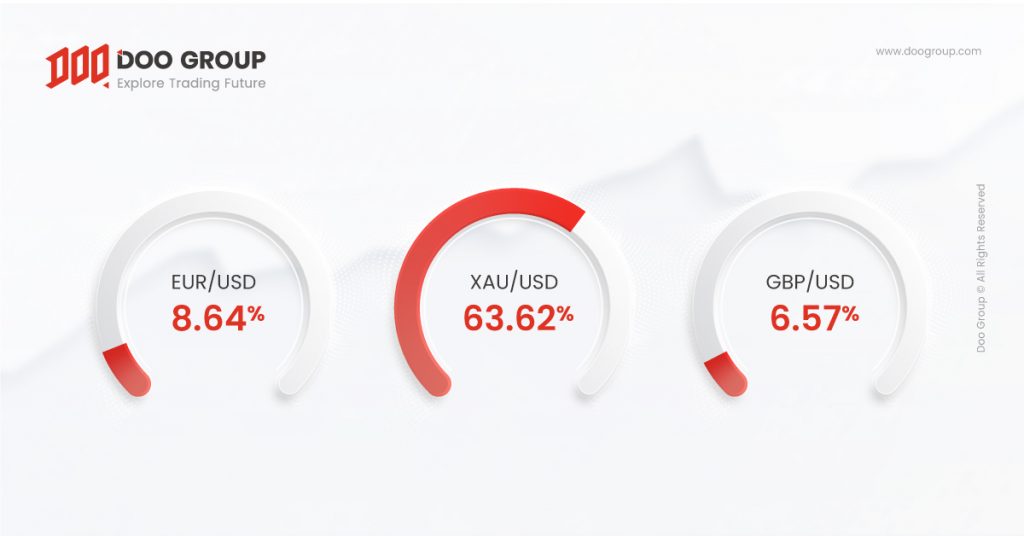 데이터에 따르면 8월 가장 인기 있는 종목은 XAU/USD, EUR/USD, GBP/USD로 8월 전체 거래량의 78.82%를 차지했습니다. 이 중에서 XAU/USD의 월간 거래량이 약 346.1억 달러에 달러고 EUR/USD와 GBP/USD의 월 거래량은 약 82.7억 달러입니다.