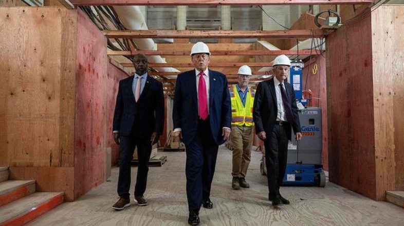 7 月 24 日,特朗普罕见地访问美联储。他和美联储主席鲍威尔戴着白色安全帽,一起参观了美联储正在翻修的大楼。美媒指出这是近 20 年来美国总统首次正式造访美联储。