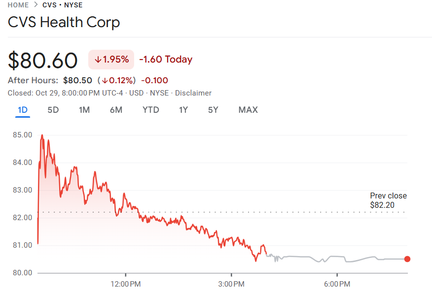 10 月 29 日至 30 日,CVS 药局(CVS)公布第三季度财报,营收同比增长 7.8% 至 1029 亿美元,优于市场预期的 988 亿美元;每股收益(EPS)为 1.60 美元,高于市场预期的 1.37 美元。