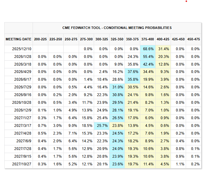 10 月 29 日至 30 日,美联储周三宣布再度降息 25 个基点,为今年第二次下调利率,并表示将于 12 月起停止缩减资产负债表规模。尽管市场押注年底前仍有进一步降息,美联储主席鲍威尔强调,目前委员会内部对未来利率路径分歧加大,12 月再次降息“并非板上钉钉”。