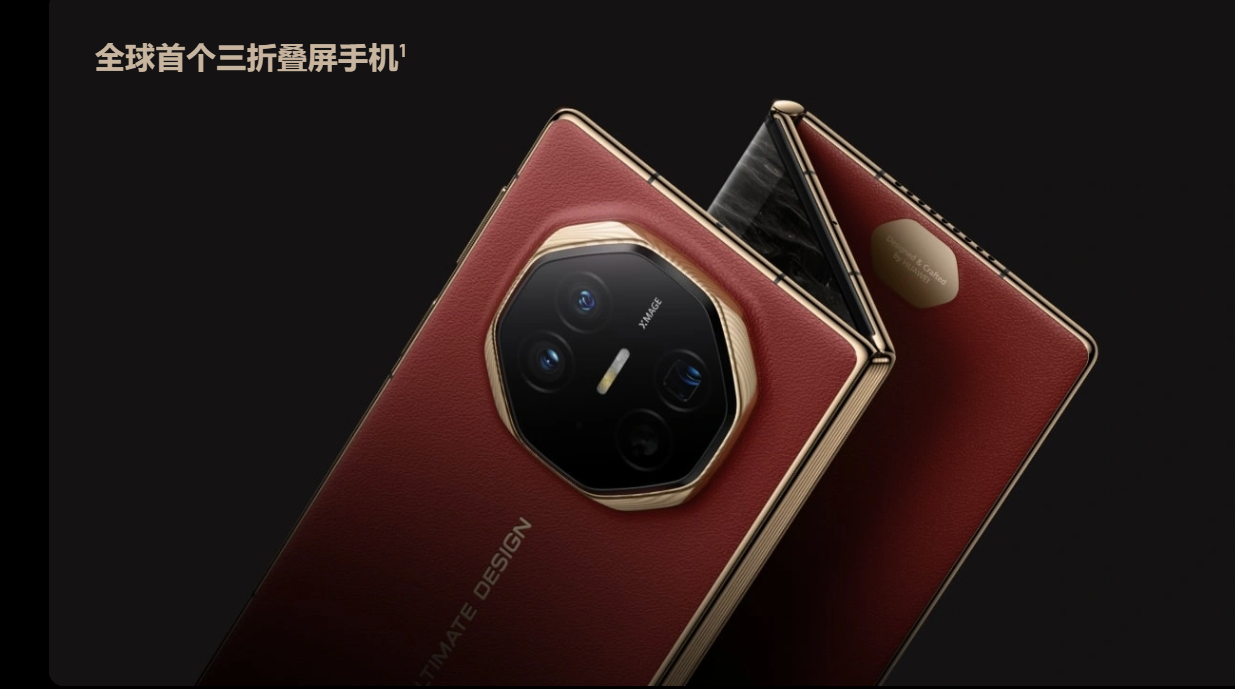 10 日,华为首款三折叠屏手机——华为 Mate XT 非凡大师正式发布。余承东表示,这款三折叠屏手机是“全球最大折叠屏手机”和“全球最薄折叠屏手机”,和现有的横向折叠屏手机相比,屏幕显示面积提升了 2 倍,更适合用于资料查看等办公场景以及视频观赏等娱乐场景。