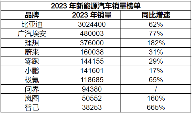 1 月 1 日,2023 年中国新能源汽车交付榜单出炉,其中比亚迪的交付量稳居全国新能源销量榜单首位,广汽埃安和理想分别位居第二和第三。