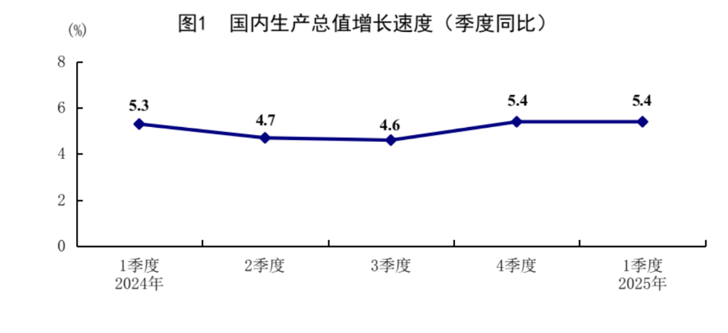 中国一季度 GDP 同比增长 5.4%,总值 318,758 亿元