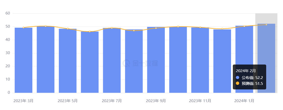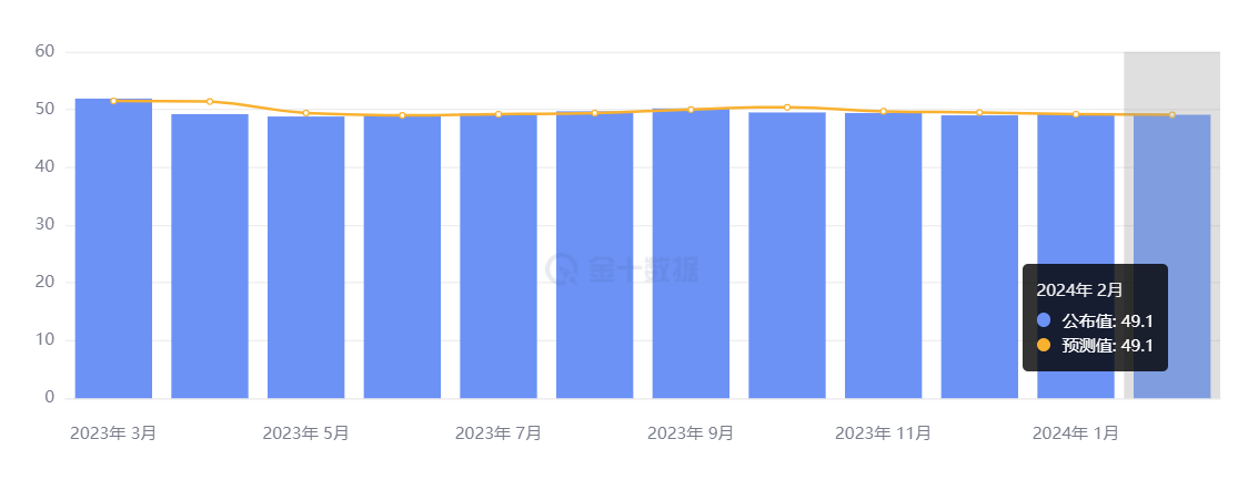 中国国家统计局发布数据显示,2 月官方制造业 PMI 为 49.1%,比上月下降 0.1%;官方非制造业 PMI 为 51.4%,比上月上升 0.7%;综合 PMI 产出指数为 50.9%,与上月持平。