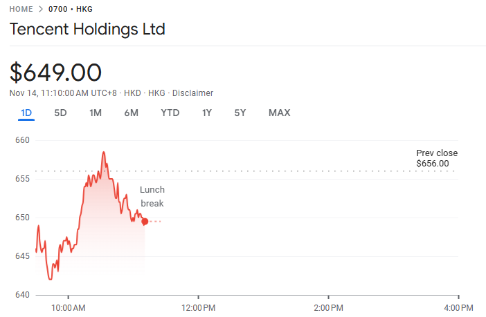 11 月 13 日至 14 日,腾讯控股(00700)公布截至 9 月底的第三季度业绩,营收与利润均超出市场预期。公司本季度纯利 631.3 亿元人民币,同比上升逾 18%;按非国际财务报告准则(Non-IFRS)计算,经调整纯利增长近 18%,达 705.5 亿元人民币;收入同比增长 15%,至 1928 亿元人民币。