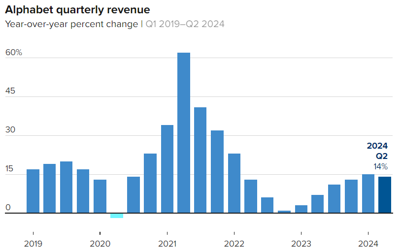 ( Alphabet(GOOGL)的母公司谷歌在第二季度的营收年增长 14%,达到 847.4 亿美元,超过市场预期的 842.9 亿美元。)