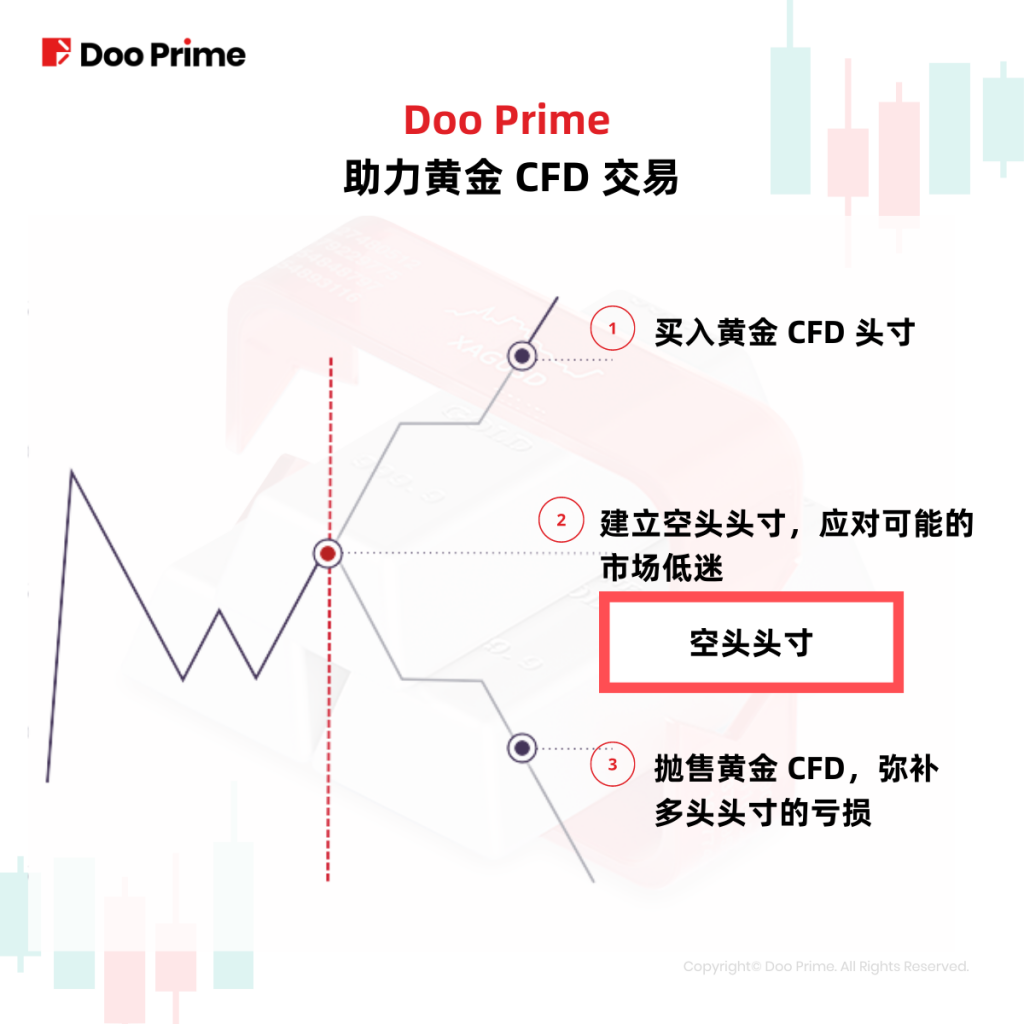 如果黄金差价合约确实下跌,那么空头头寸的收益将抵消多头头寸的亏损。如果黄金差价合约上涨,则可以平仓获利。