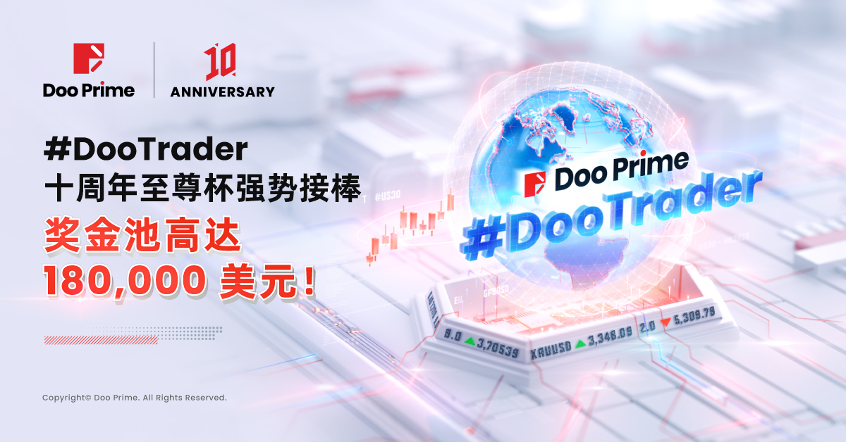 Doo Prime 今年将迎来十周年的辉煌历程,为欢庆这一里程碑,我们特别推出 #DooTrader 至尊杯十周年慈善交易大赛,不仅经典组与大师组各增设 5 个奖项(第 6 名至第 10 名),更令人期待的是,相比往期的比赛, #DooTrader 至尊杯的奖金额持续攀升,经典组冠军奖金从 3,500 美元提高到 7,000 美元,大师组冠军奖金从 40, 000 美元翻倍至 80,000 美元,总奖金池高达 182,000 美元,等待您来一决高下!
