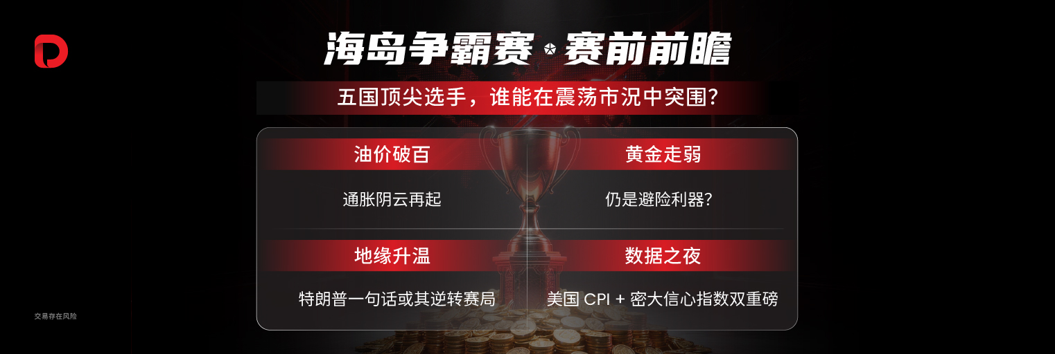 想要看清这 30 位顶尖选手如何在黄金回调、油价破百的乱局中”火中取栗”?为了回馈广大观众,#DooTrader 海岛争霸赛的直抽观赛福利极度丰富,快来预约直播,这不仅是一场比赛,更是一次难得的大师课。