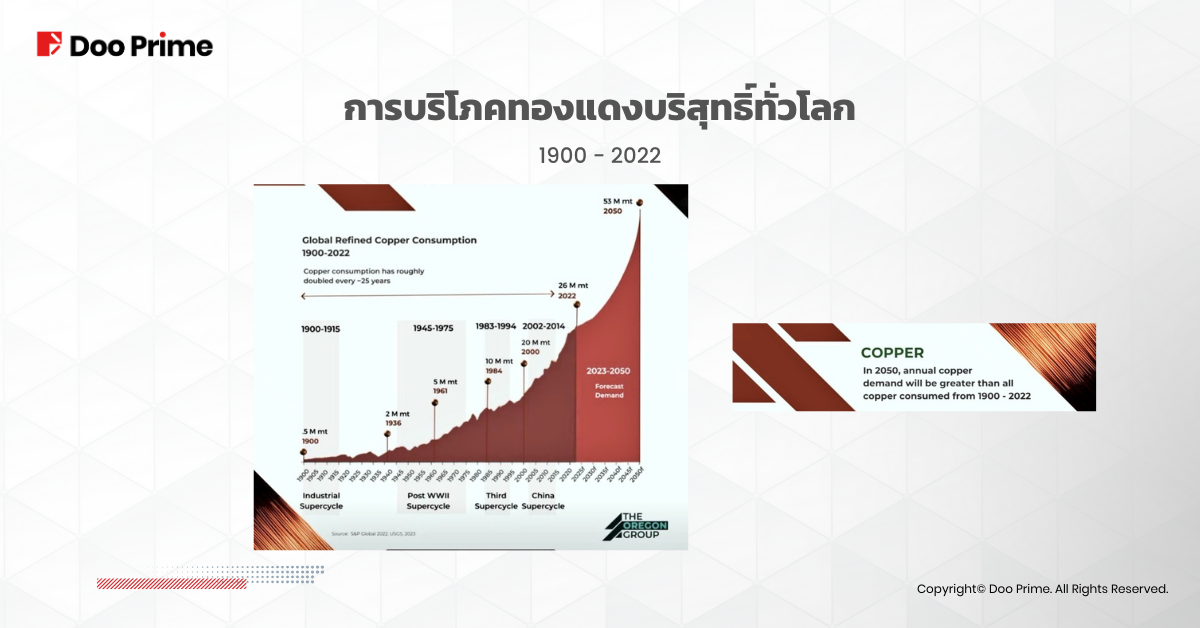 • การเปลี่ยนไปสู่พลังงานหมุนเวียน: การเปลี่ยนแปลงทั่วโลกที่ไปสู่แหล่งพลังงานหมุนเวียน เช่น พลังงานลมและพลังงานแสงอาทิตย์ ต้องอาศัยทองแดงอย่างมากสำหรับโครงสร้างพื้นฐานในการส่งและจำหน่าย