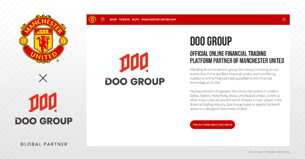 จากการเป็นพาร์ทเนอร์ใหม่ครั้งนี้ โลโก้ Doo Group จะถูกแสดงบนบอร์ด LED รอบสนาม Old Trafford ที่เป็นสนามฟุตบอลที่มีชื่อเสียงระดับโลก และเป็นบ้านของทีมแมนยูเอง