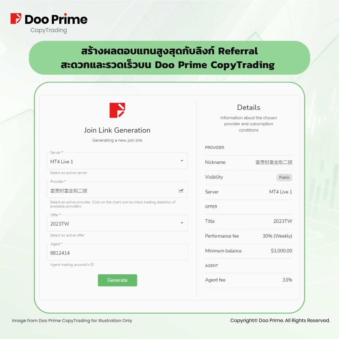 เพิ่มผลตอบแทนสูงสุดด้วยลิงก์ Referral ทำให้การแชร์บน Doo Prime CopyTrading ง่ายขึ้น