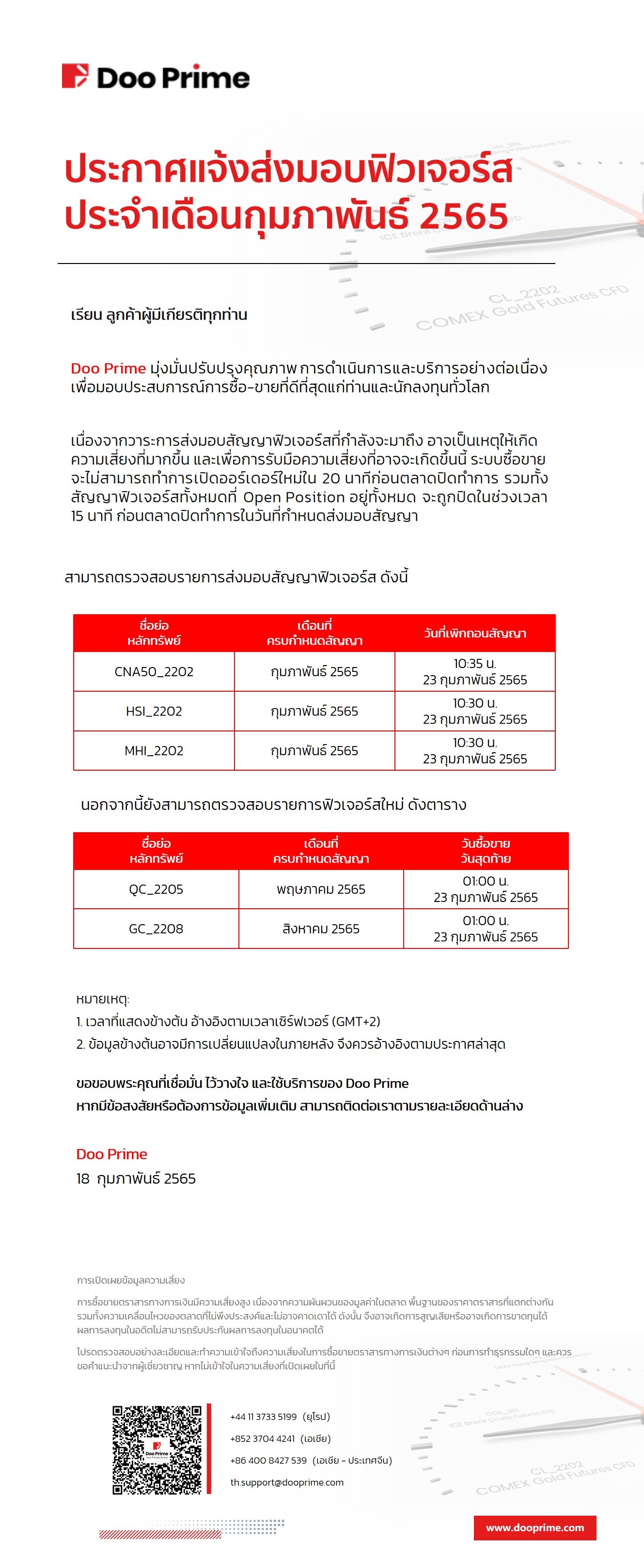 2022-02-18 | Futures Delivery , ส่งมอบฟิวเจอร์ส
