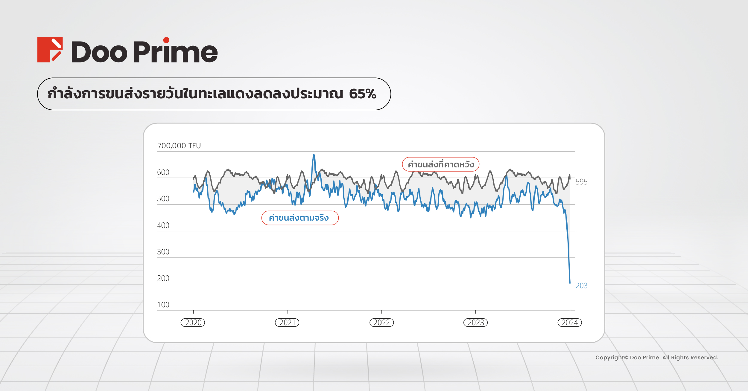 ส่งผลให้เวลาเดินทางเพิ่มขึ้นสองสัปดาห์ ส่งผลอย่างมากต่ออัตราค่าน้ำมันในการขนส่ง ค่าขนส่ง และค่าประกันภัย โดยเฉพาะอย่างยิ่ง ปริมาณตู้คอนเทนเนอร์ขนส่งสินค้าได้รับผลกระทบอย่างมาก โดยลดลงประมาณ 65% ซึ่งต่ำกว่าระดับที่คาดการณ์ไว้มาก