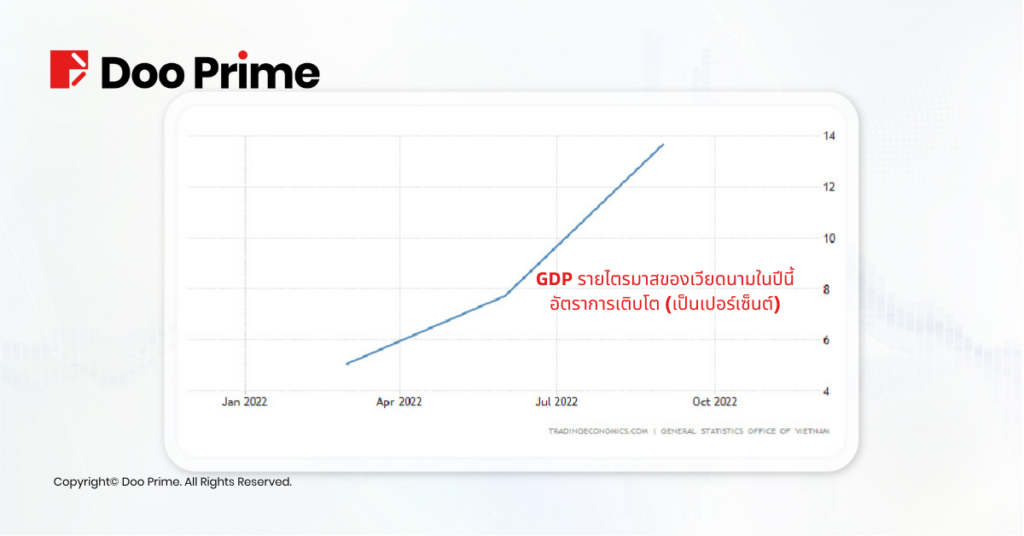 ในขณะที่เศรษฐกิจยุโรปและอเมริกากำลังเผชิญกับภาวะถดถอยในปี 2022 และการเติบโตของ GDP ของจีนชะลอตัวลง ในทางกลับกัน เวียดนามกลับมีการเติบโตทางเศรษฐกิจเพิ่มสูงขึ้น