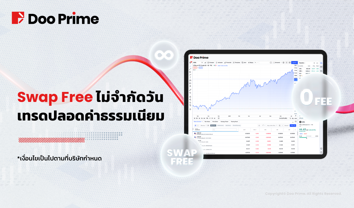 เทรดสบายใจ… ไร้ค่าธรรมเนียม กับบัญชี Swap Free แบบไม่จำกัดวัน ที่ Doo Prime