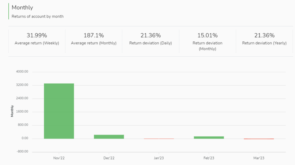 แม้ว่าผู้ให้ signal อย่าง “Xiaoniu No. 0001” (小牛0001号) ให้ผลตอบแทนที่น่าประทับใจ แต่ค่อนข้างไม่มีความสม่ำเสมอ โดยแหล่งที่มาของสัญญาณการซื้อขายจะได้รับผลตอบแทนสูงสุดที่ 33,235.2% ดังที่ได้กล่าวไว้ก่อนหน้านี้ แต่กำไรส่วนใหญ่กระจุกตัวในเดือนพ.ย. และธ.ค. ของปีที่แล้ว โดยมีผลประกอบการที่ไม่ค่อยดีนักในเดือนอื่นๆ