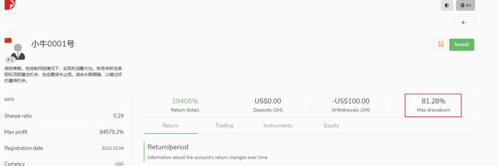 แม้จะเริ่มต้นด้วยเงินทุนที่ค่อนข้างต่ำ แต่ด้วยเงินฝากเริ่มต้นที่น้อยกว่า 100 เหรียญสหรัฐ แต่ผู้ให้ Signal “Xiaoniu No. 0001” (小牛0001号) ก็ทำได้ดีเป็นพิเศษ โดยมีมูลค่าสินทรัพย์สูงถึง 4,739.52 เหรียญสหรัฐ