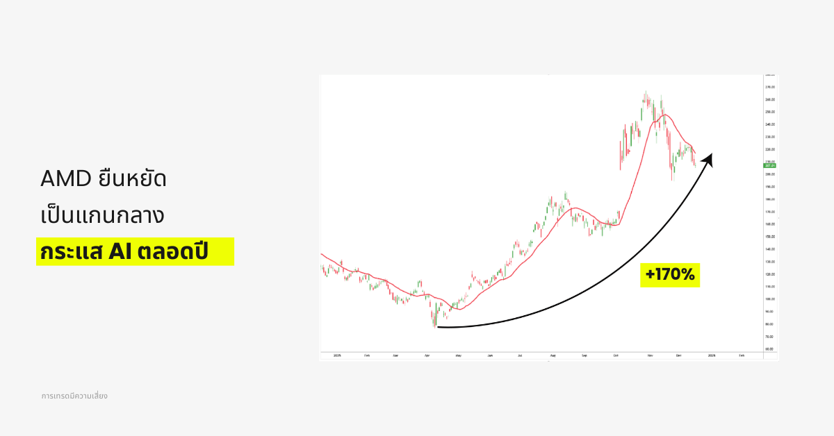 ถ้าปี 2024 คือการรอจังหวะ ปี 2025 คือการปรับฐานราคาครั้งใหญ่  ตลอดทั้งปี ตลาดมีการสลับสับเปลี่ยนธีมกันไปมาทั้งในแง่ของ :   หุ้นเติบโต (Growth) ชะลอตัวลงพักหนึ่ง ก่อนจะกลับมาแรงอีกครั้ง  สินทรัพย์ปลอดภัยกลับมาเป็นที่ต้องการ  ความผันผวนยังคงสูงลิ่วในทุกสินทรัพย์  ปี 2025 ไม่ได้มีเทรนด์เดียวที่ชัดเจน แต่มีทั้งผู้ชนะที่โดดเด่น หุ้นที่ร่วงแรง และการเปลี่ยนผู้นำตลาดที่เกิดขึ้นอย่างรวดเร็ว3 อันดับหุ้นที่ทำกำไรสูงสุดในปี 2025   Top 3 หุ้นเด่น ประจำปี 2025  แม้ว่ากลุ่มผู้นำในตลาดจะหมุนเวียนไปมาตลอดปี แต่มี 3 หุ้นที่ดึงดูดความสนใจได้อย่างต่อเนื่องและทำผลงานได้ดีกว่าตลาดโดยรวม  Micron Technology (MU)  Micron (MU) พุ่งขึ้นราว 200% จากจุดต่ำสุดในปี 2025 ถือเป็นหนึ่งในหุ้นที่ทำผลงานได้ดีที่สุดในปีนั้น  Micron ได้รับแรงหนุนหลักจากความเชื่อมั่นครั้งใหม่ในวงจรเซมิคอนดักเตอร์ ทั้งราคาหน่วยความจำที่นิ่งขึ้น ความต้องการที่เกี่ยวข้องกับ AI ที่ทำให้มองเห็นอนาคตได้ชัดเจนขึ้น และความคาดหวังเกี่ยวกับการลงทุนรอบใหม่ (capex) ช่วยเปลี่ยนมุมมองนักลงทุน ผลงานของ MU สะท้อนธีมใหญ่ในปี 2025 คือ ความแข็งแกร่งแบบเลือกสรรในกลุ่มเซมิคอนดักเตอร์ ไม่ใช่การเหมาซื้อทั้งกลุ่ม  Palantir Technologies (PLTR)  Palantir Technologies (PLTR) ทะยานขึ้นกว่า 200% จากจุดต่ำสุดในปี 2025 คล้ายกับ MU  Palantir ยังคงเป็นหนึ่งในหุ้นที่มีคนพูดถึงมากที่สุดแห่งปี การมุ่งเน้นที่สัญญาภาครัฐ ซอฟต์แวร์องค์กร และการวิเคราะห์ที่ขับเคลื่อนด้วย AI ทำให้มันยังอยู่ในความสนใจแม้ในช่วงที่หุ้นเทคโนโลยีโดยรวมมีการปรับฐาน ความแข็งแกร่งของ PLTR ตอกย้ำว่า โมเดลรายได้ประจำและกรณีการใช้งานที่ชัดเจน คือสิ่งที่ตลาดให้รางวัลเมื่อนักลงทุนเลือกสรรมากขึ้น  Advanced Micro Devices (AMD)  AMD ได้เปรียบจากการวางตำแหน่งในตลาดศูนย์ข้อมูล (Data Centers) อีกทั้งยังมี AI และคอมพิวเตอร์ประสิทธิภาพสูง แม้ว่าการแข่งขันในตลาดชิปจะดุเดือด แต่ AMD ก็สามารถรักษาความเกี่ยวข้องในกระแส AI ได้ และหลีกเลี่ยงการแกว่งตัวของความเชื่อมั่นอย่างรุนแรงที่เห็นในหุ้นเก็งกำไรอื่นๆ3 อันดับหุ้นที่ขาดทุนสูงสุดในปี 2025 […]