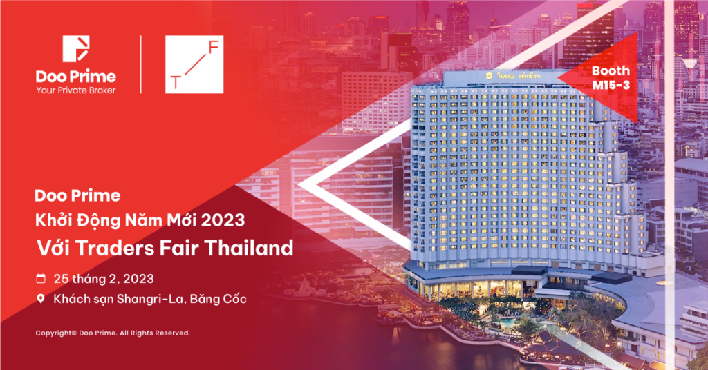Triển lãm tài chính Traders Fair Thailand 2023 sẽ được tổ chức tại khách sạn Shangri-La, Băng Cốc vào ngày 25 tháng 2 tới đây. Có thể nói, Traders Fair từ lâu đã là một sự kiện tài chính quốc tế uy tín hàng đầu, với sức hút “khủng” đối với các nhà đầu tư, nhà giao dịch cũng như hàng loạt chuyên gia đầu ngành trong lĩnh vực tài chính. Quầy của Doo Prime sẽ nằm ở vị trí M15-3 – khu vực “vàng” với nhiều hoạt động hết sức hấp dẫn. Đây chính là cơ hội tuyệt vời giúp Doo Prime mở rộng phạm vi tiếp cận đến các nhà đầu tư cùng các nhà giao dịch chuyên nghiệp trên địa bàn.