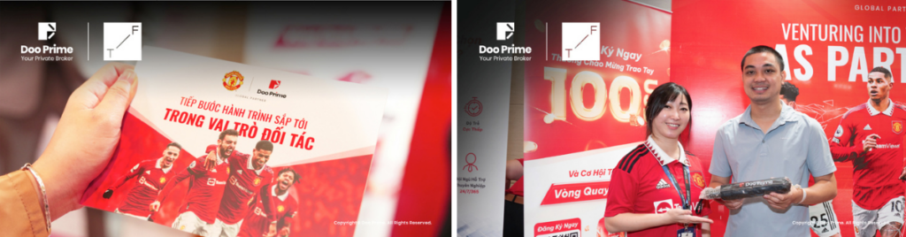 Nhiều khách tham quan gian hàng đã thể hiện sự công nhận về đối tác toàn cầu chính thức của Doo Prime với Manchester United. Đối tác toàn cầu đã tạo ra những làn sóng trong ngành công nghiệp, khiến nhiều người ngạc nhiên với thành tựu này. Đồng thời, đã cho phép Doo Prime xây dựng các mối quan hệ mới, kết nối các nhà giao dịch và người hâm mộ bóng đá thông qua những giá trị chung khi chúng ta cùng nhau đạt được thành công – Niềm tin, Kỷ luật và Làm việc nhóm. Sự đoàn kết này đã làm tăng thêm hình ảnh của Doo Prime như một sàn môi giới đáng tin cậy nay càng đáng tin cậy hơn.
