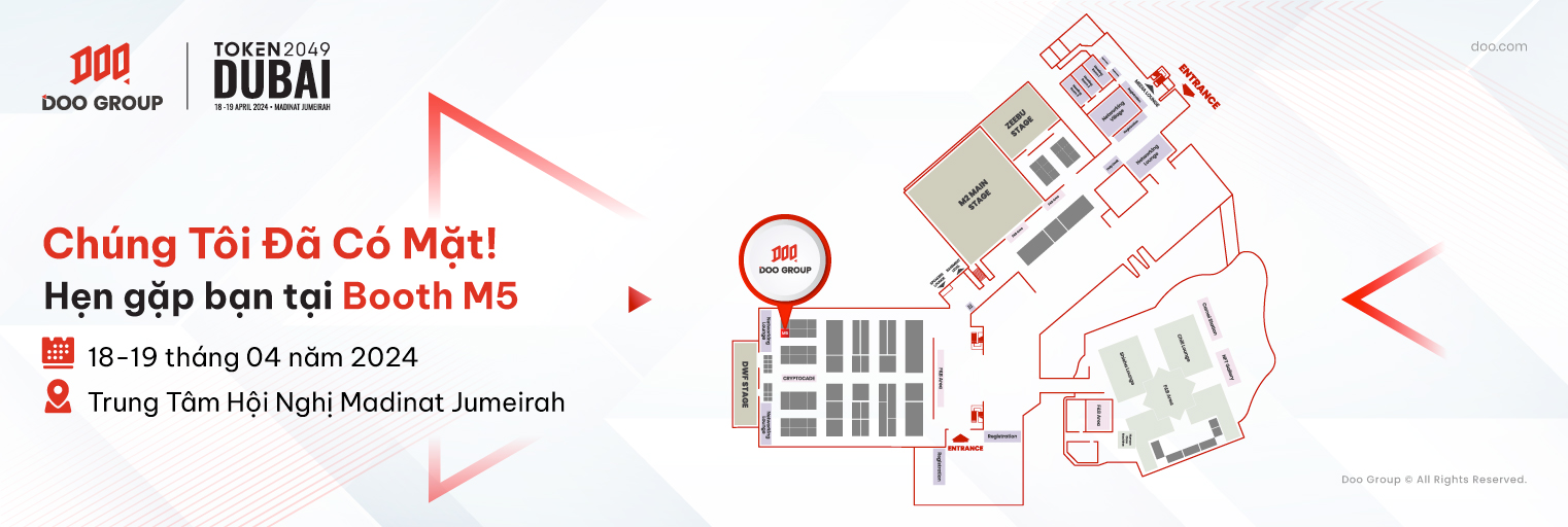Doo Group xin hân hoan thông báo sự hiện diện của chúng tôi trong vai trò là nhà tài trợ bạc tại Hội Nghị Token 2049 Dubai. Sự kiện dự kiến được tổ chức từ ngày 18 tháng 4 năm 2024 đến ngày 19 tháng 4 năm 2024 tại Trung Tâm Hội Nghị Madinat Jumeirah.